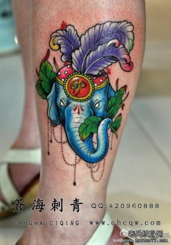 女生腿部漂亮潮流的大象纹身图案_女生纹身图案大全_纹身图吧