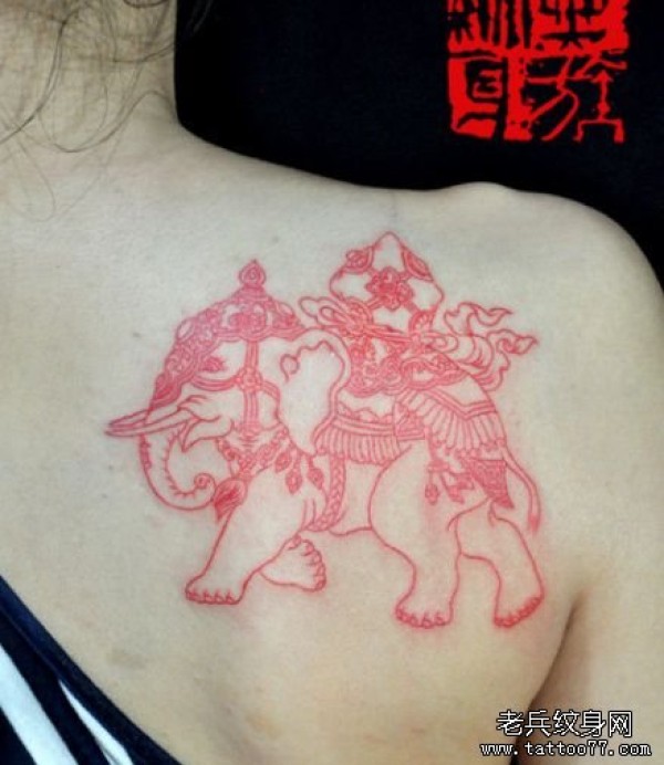 女生肩背一款线条大象纹身图案_女生纹身图案大全_纹身图吧