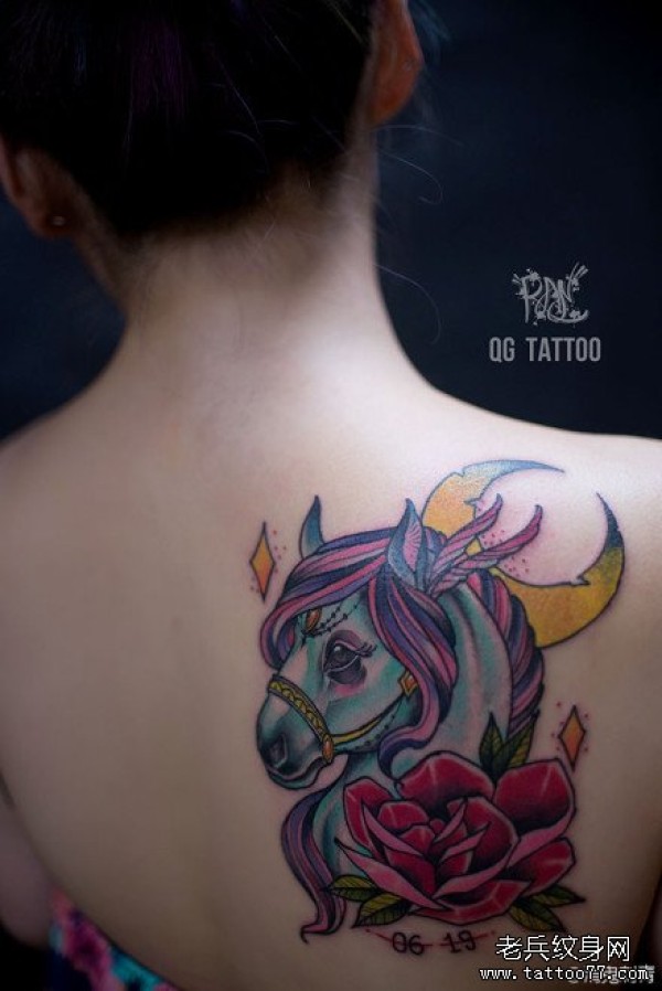 女生肩背时尚经典的马纹身图案_女生纹身图案大全_纹身图吧