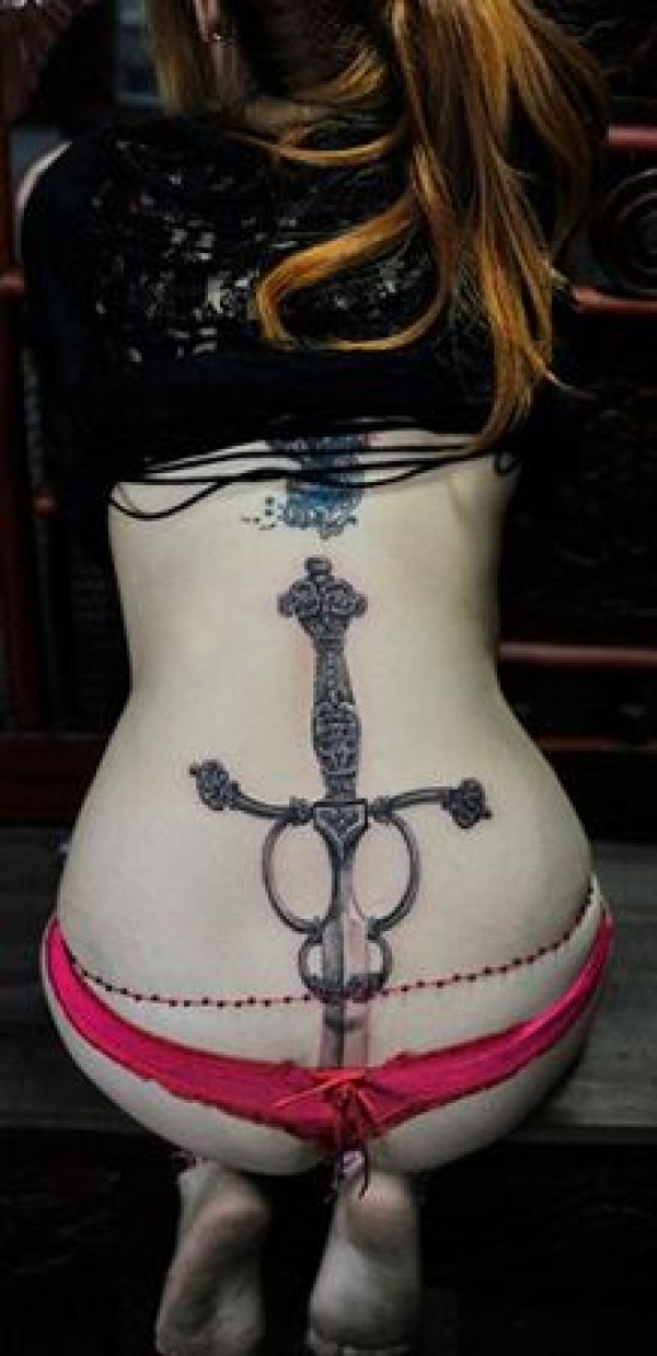 美女臀部宝剑纹身图案―性感_女生纹身图案大全_纹身图吧