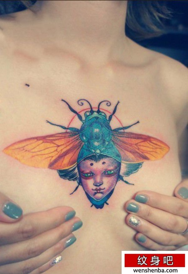美女夏蝉纹身图案_女生纹身图案大全_纹身图吧