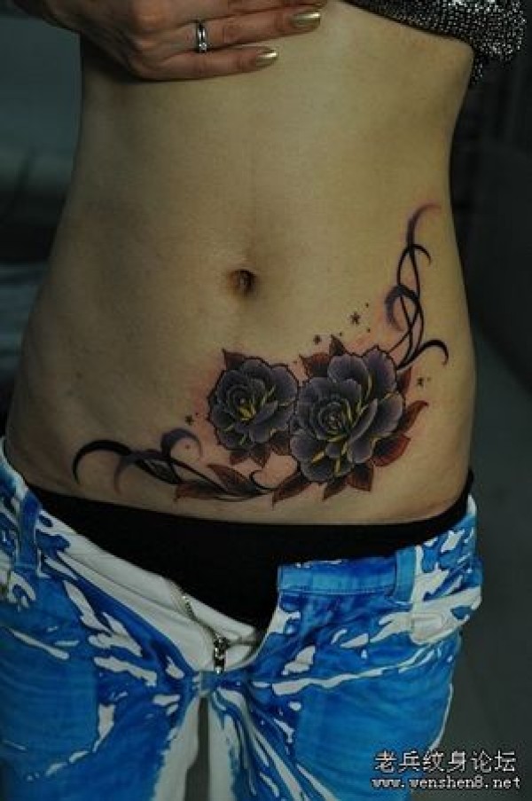 美女腹部花卉藤蔓纹身图案_女生纹身图案大全_纹身图吧