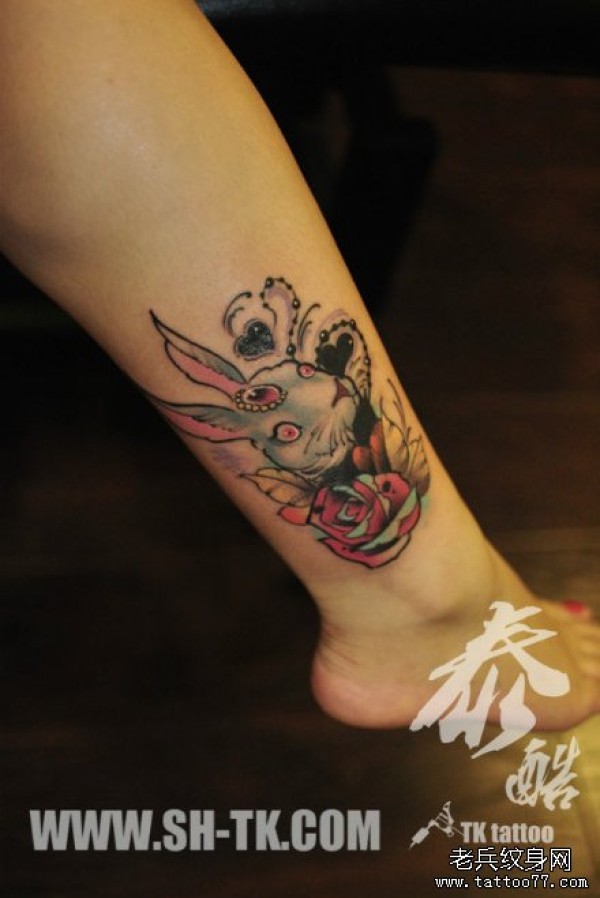 女生腿部可爱时尚的兔子纹身图案_女生纹身图案大全_纹身图吧