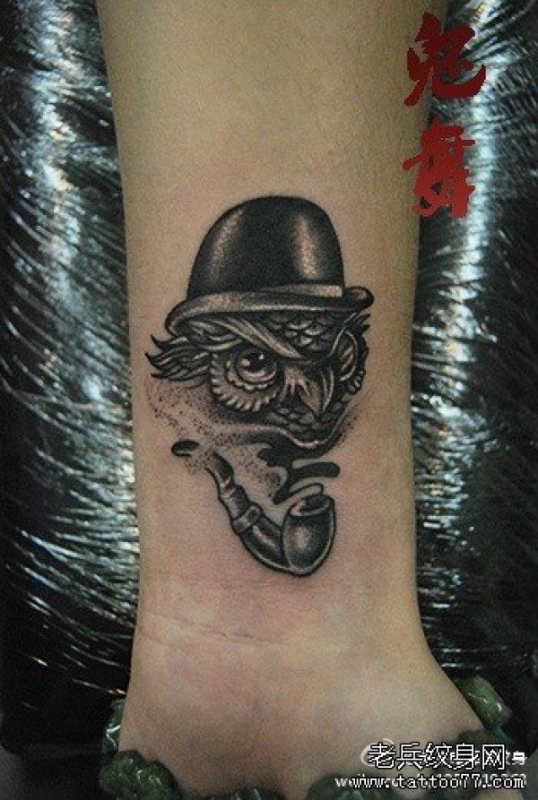 女生手腕流行时尚的猫头鹰纹身图案_女生纹身图案大全_纹身图吧
