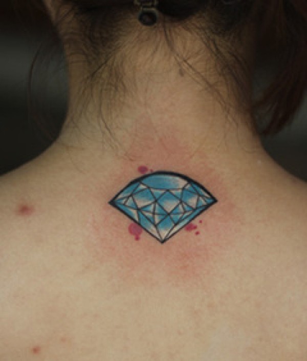 女生颈部蓝色钻石纹身图案_女生纹身图案大全_纹身图吧