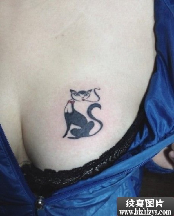女生胸部性感猫咪纹身图案图片_女生纹身图案大全_纹身图吧