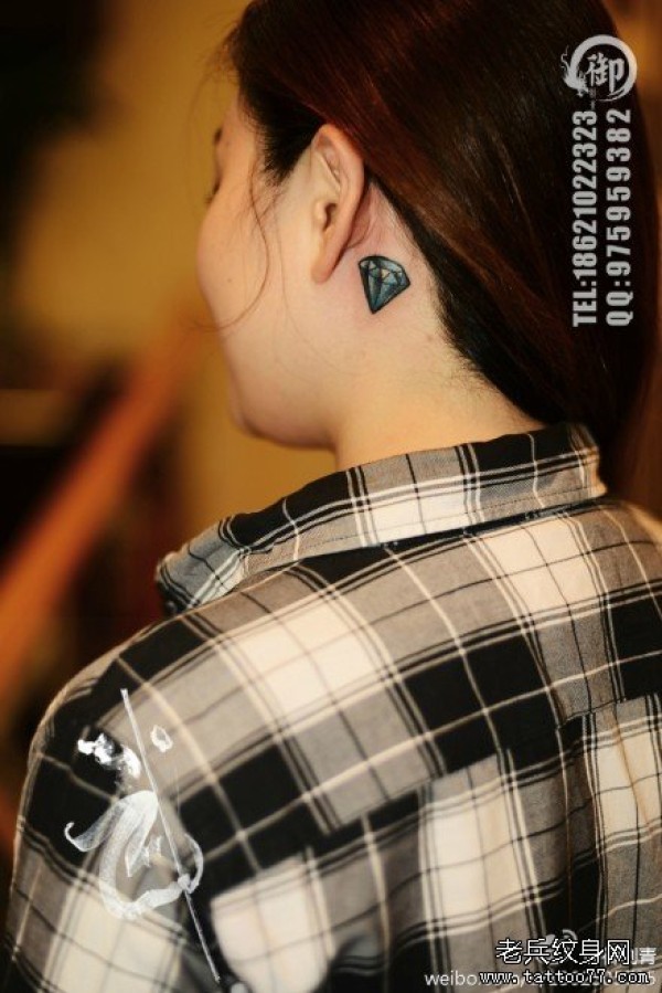 女生耳部小巧潮流的彩色钻石纹身图案_女生纹身图案大全_纹身图吧