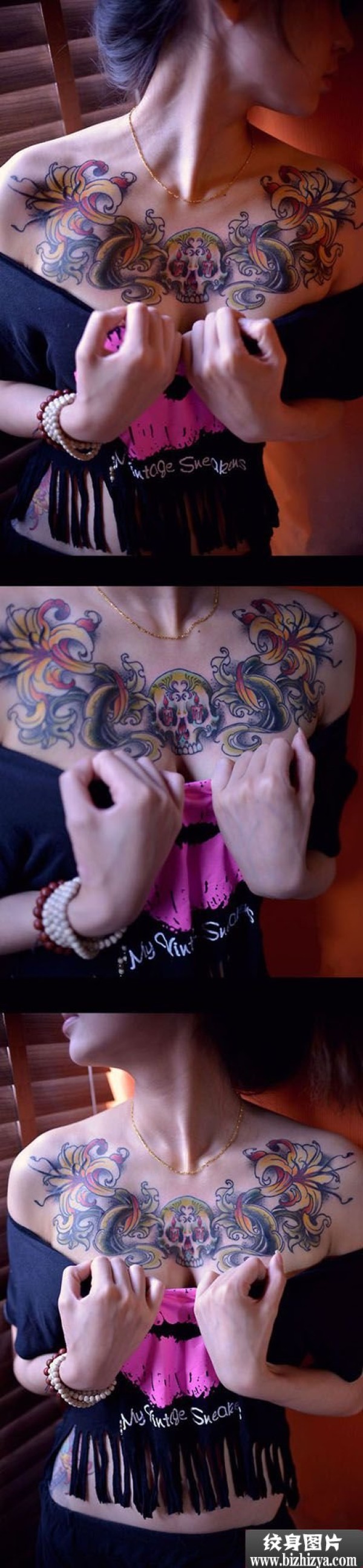 美女胸口曼珠沙华霸气纹身图案图片_女生纹身图案大全_纹身图吧