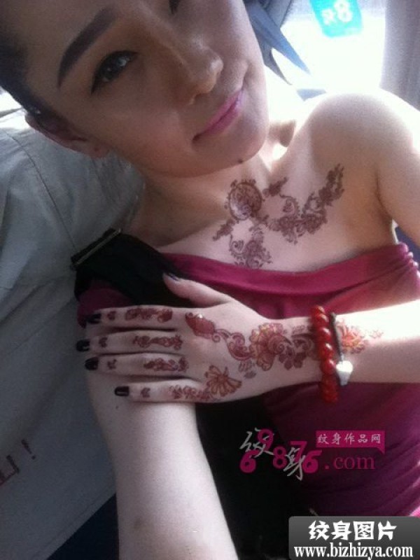 美女印度海娜锁骨纹身图案图片_女生纹身图案大全_纹身图吧