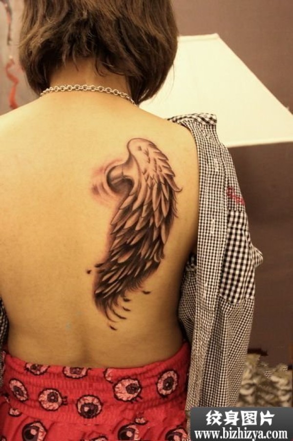 女生背上唯美单羽翼纹身图案图片_女生纹身图案大全_纹身图吧