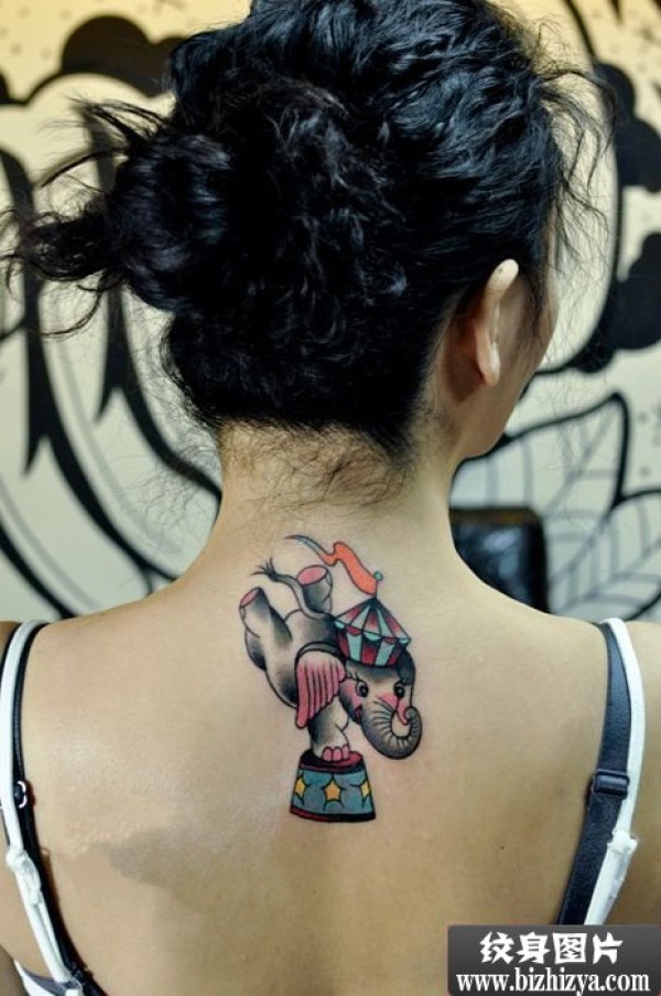 女生背上马戏团大象纹身图案图片_女生纹身图案大全_纹身图吧