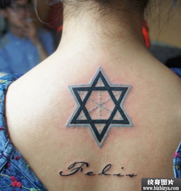 女生背部六芒星刺青图案图片_女生纹身图案大全_纹身图吧