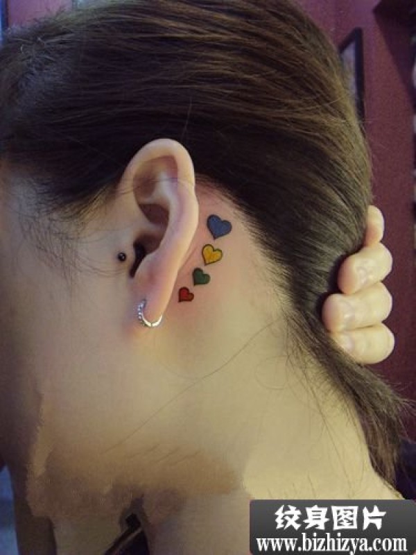 女生耳后彩色爱心纹身图图案图片_女生纹身图案大全_纹身图吧