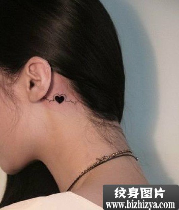 美女耳后爱心与心电图图案纹身图案图片_女生纹身图案大全_纹身图吧