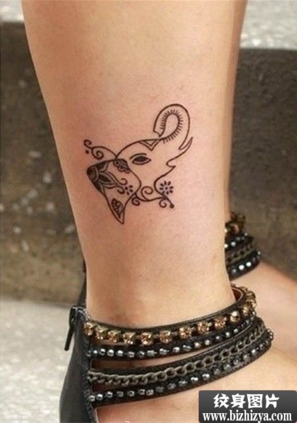 女生脚踝小象头纹身图案图案图片_女生纹身图案大全_纹身图吧