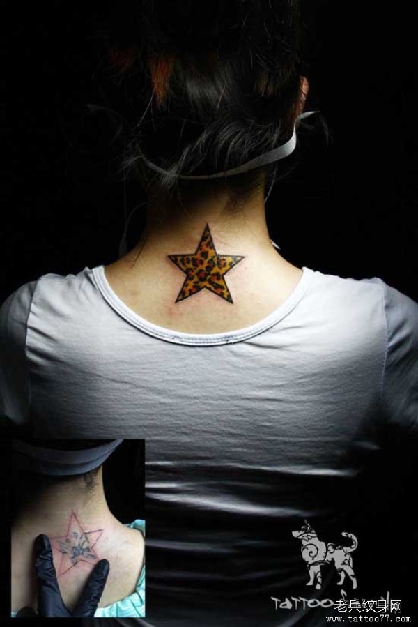 美女颈部漂亮的豹纹五角星纹身图案_女生纹身图案大全_纹身图吧