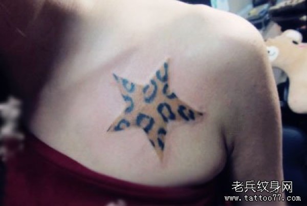 美女锁骨处漂亮的豹纹五角星纹身图案_女生纹身图案大全_纹身图吧