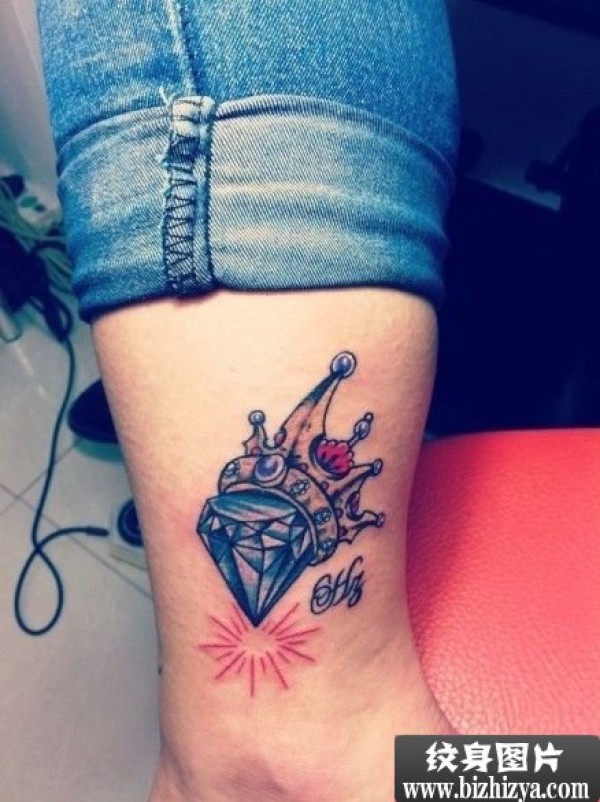 女生小腿钻石皇冠纹身图案图案图片_女生纹身图案大全_纹身图吧