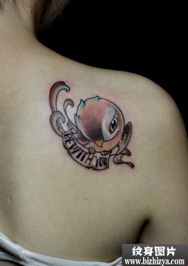 女生肩部可爱燕子刺青图案图片_女生纹身图案大全_纹身图吧