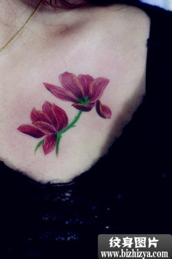 女生胸前花朵纹身图案图片_女生纹身图案大全_纹身图吧