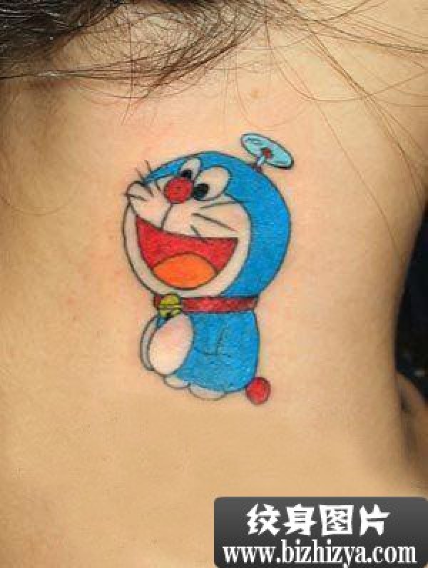 女生颈部可爱哆啦a梦时尚纹身图案图片_女生纹身图案大全_纹身图吧