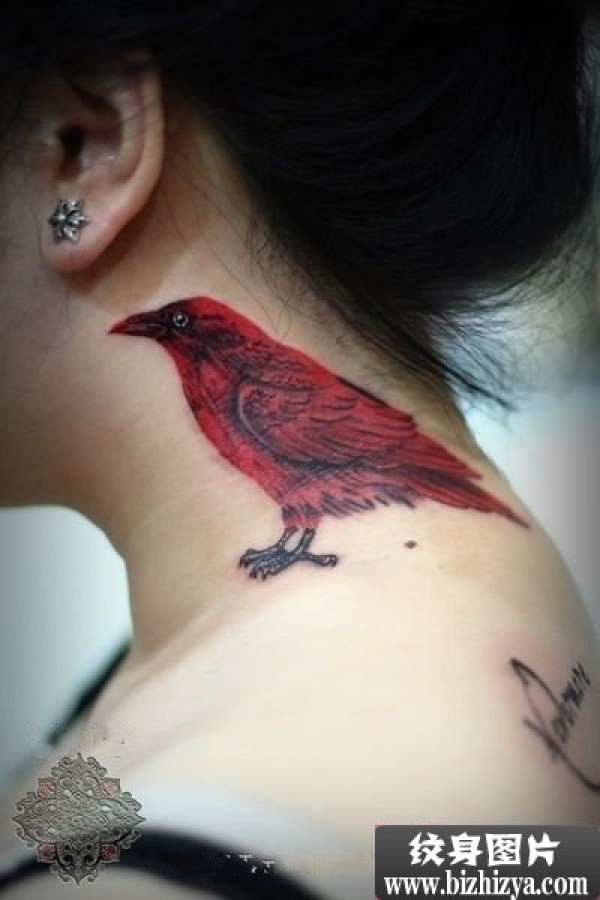 女生个性红色小鸟纹身图案图片_女生纹身图案大全_纹身图吧