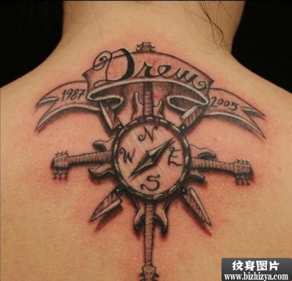 女生背上指南针纹身图案图片_女生纹身图案大全_纹身图吧