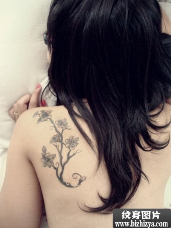 女生背部梅花纹身图案图片_女生纹身图案大全_纹身图吧