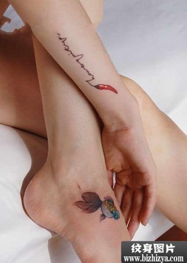 女生脚背金鱼、手臂辣椒个性纹身图案图片_女生纹身图案大全_纹身图吧