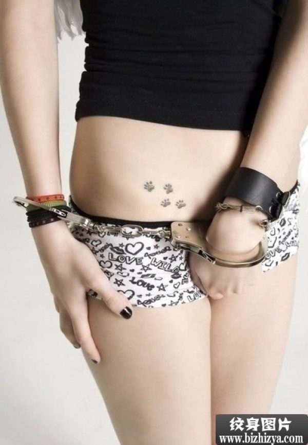 手铐美女小腹脚印纹身图案图片_女生纹身图案大全_纹身图吧