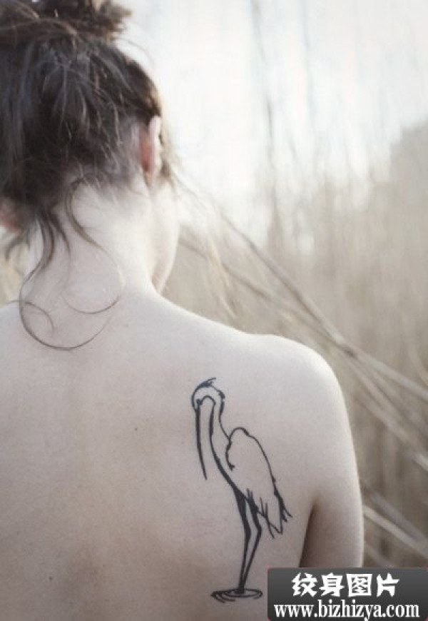 女生背部丹顶鹤时尚纹身图案图片_女生纹身图案大全_纹身图吧