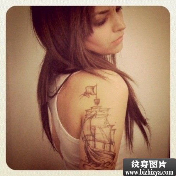 欧美女生手臂个性帆船图纹身图案图片_女生纹身图案大全_纹身图吧