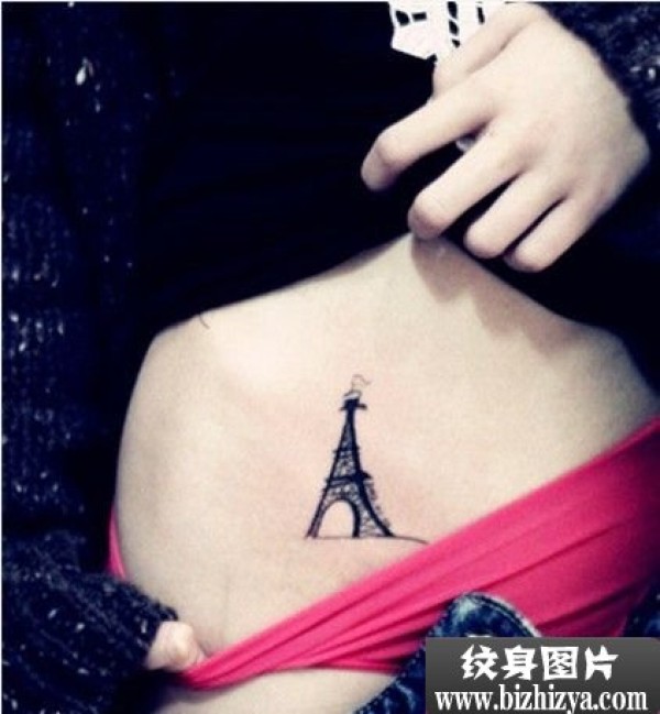 女生腹部巴黎埃菲尔铁塔纹身图案图片_女生纹身图案大全_纹身图吧