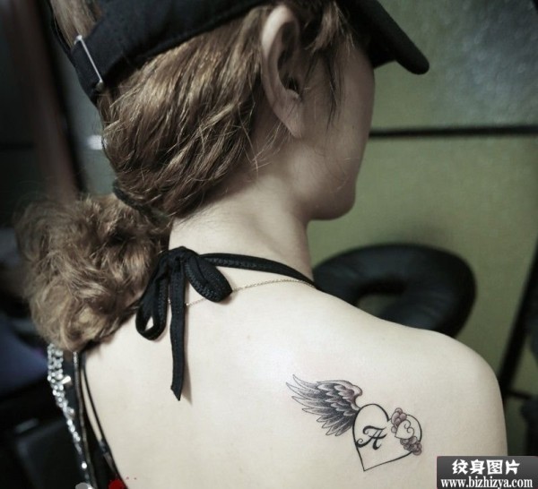 女生背上单翼翅膀心个性纹身图案图片_女生纹身图案大全_纹身图吧