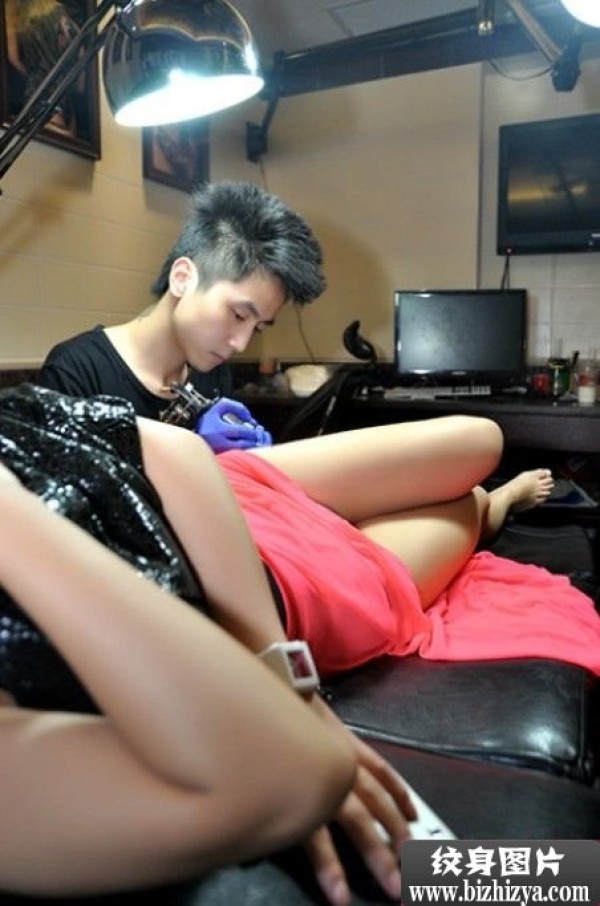 帅哥纹身师给美女刺青图案图片_女生纹身图案大全_纹身图吧