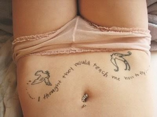 唯美女生腹部小鸟纹身_女生纹身图案大全_纹身图吧
