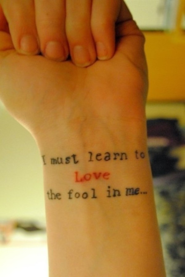 女生手臂彩色唯美英文爱情清新纹身_女生纹身图案大全_纹身图吧
