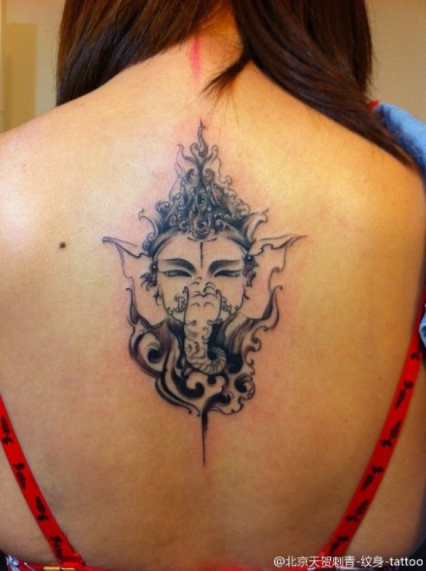女生后背唯美经典的象神纹身图案_女生纹身图案大全_纹身图吧