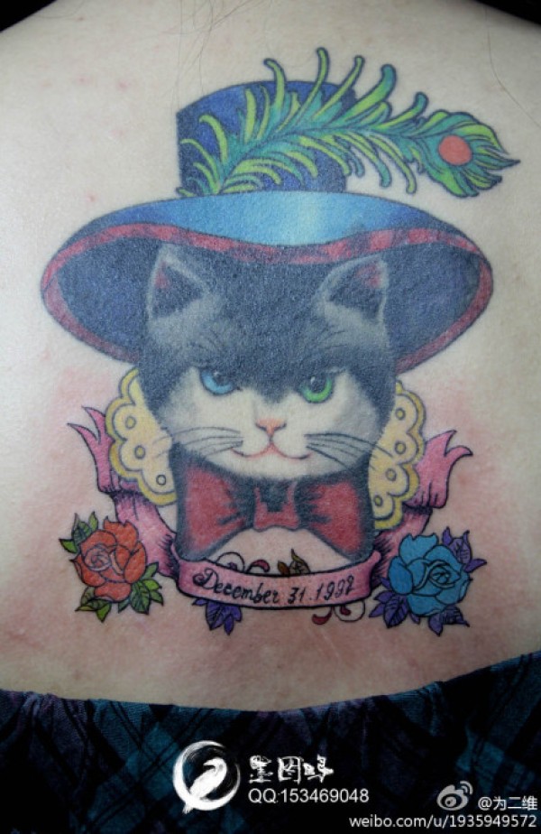 女生后背可爱的猫咪纹身图案_女生纹身图案大全_纹身图吧