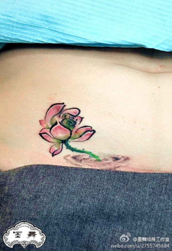 女生腹部一款唯美是的写意莲花纹身图案_女生纹身图案大全_纹身图吧