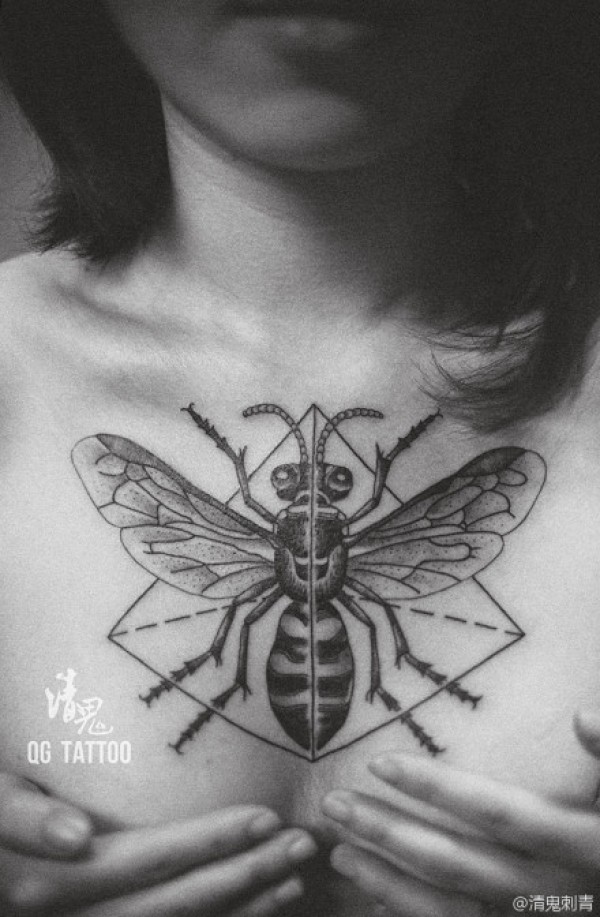 女生胸前一款黑灰马蜂纹身图案_女生纹身图案大全_纹身图吧