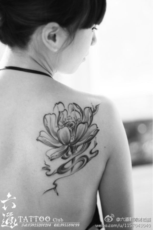 女生后肩背唯美的黑灰莲花纹身图案_女生纹身图案大全_纹身图吧