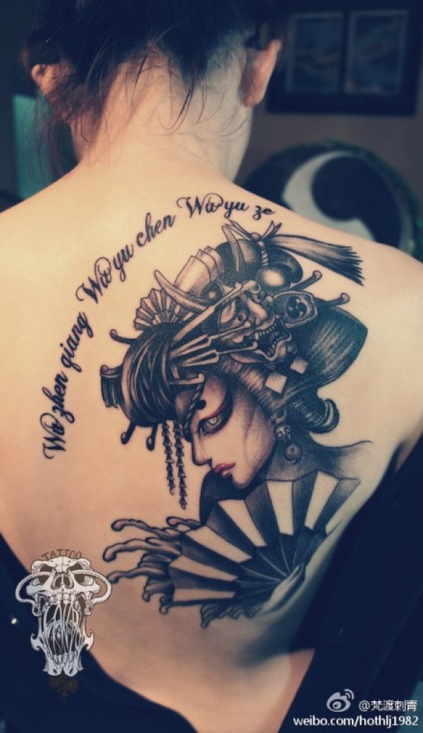女生肩背漂亮时尚的艺妓纹身图案_女生纹身图案大全_纹身图吧