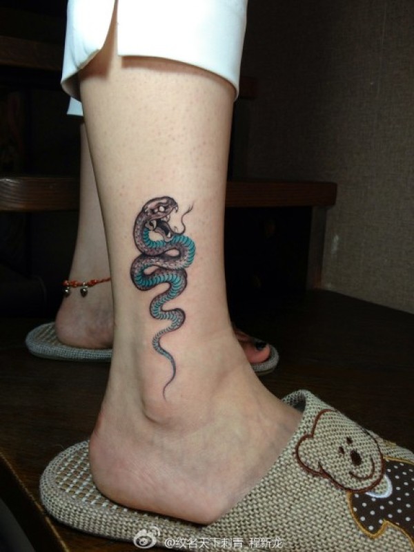 女生腿部时尚精美的小蛇纹身图案_女生纹身图案大全_纹身图吧