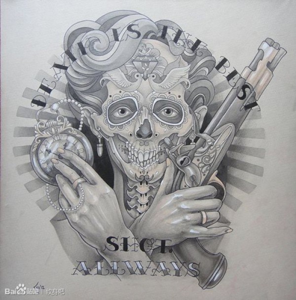 潮流时尚的戴面具的美女纹身图案_女生纹身图案大全_纹身图吧