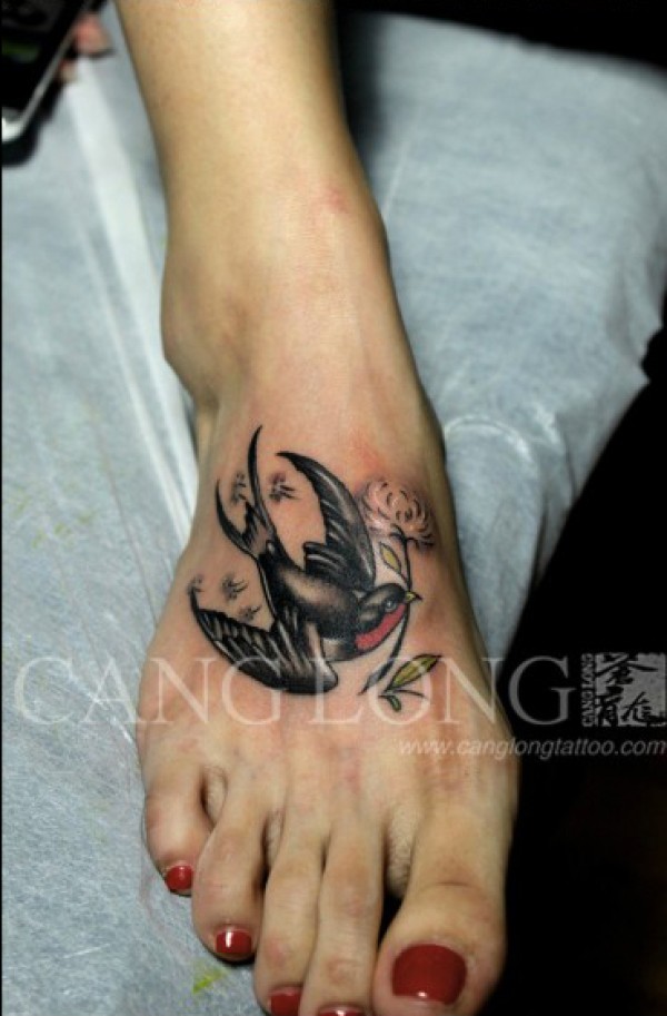 女生脚背时尚经典的小燕子纹身图案_女生纹身图案大全_纹身图吧
