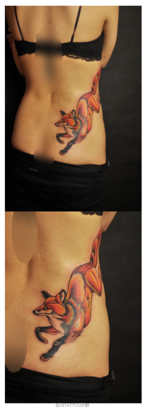 女生腰部一款经典的狐狸纹身图案_女生纹身图案大全_纹身图吧