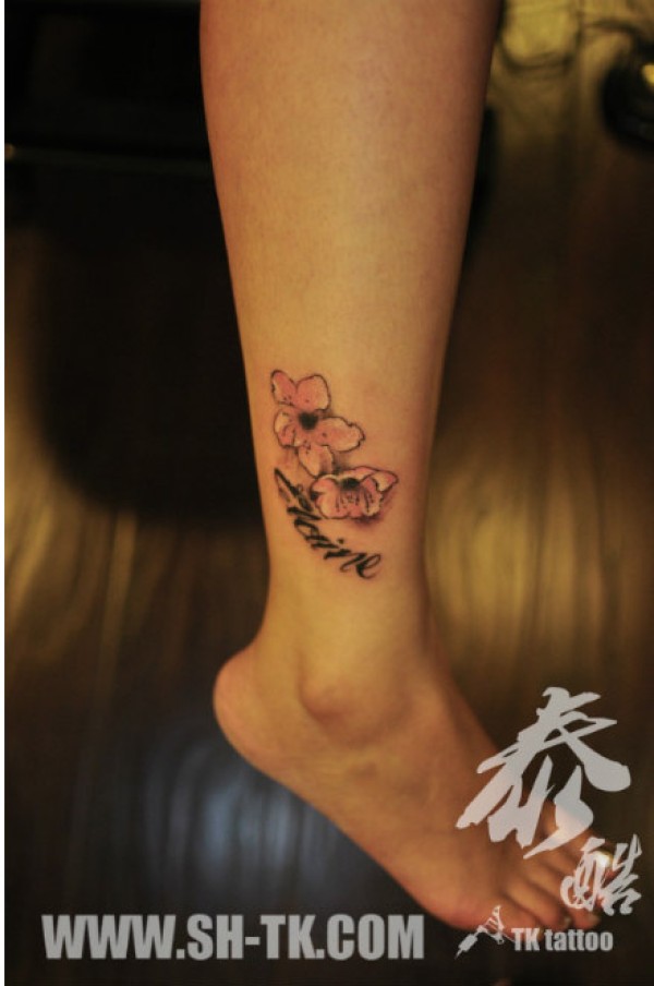 女生腿部小巧时尚的花卉纹身图案_女生纹身图案大全_纹身图吧