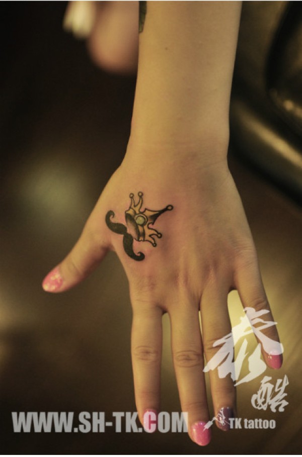 女生手部虎头皇冠与小胡子纹身图案_女生纹身图案大全_纹身图吧