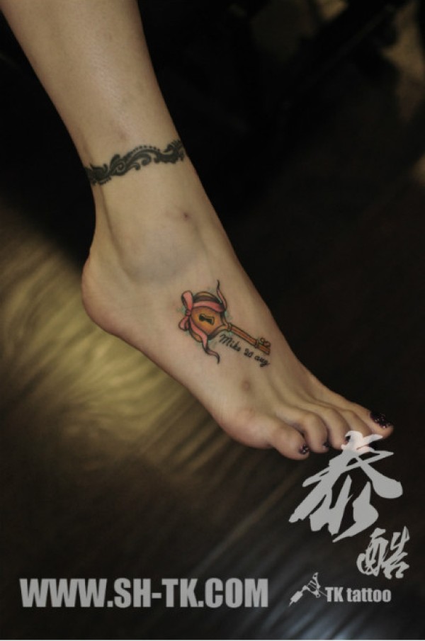 女生脚背小巧精美的钥匙纹身图案_女生纹身图案大全_纹身图吧